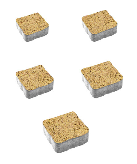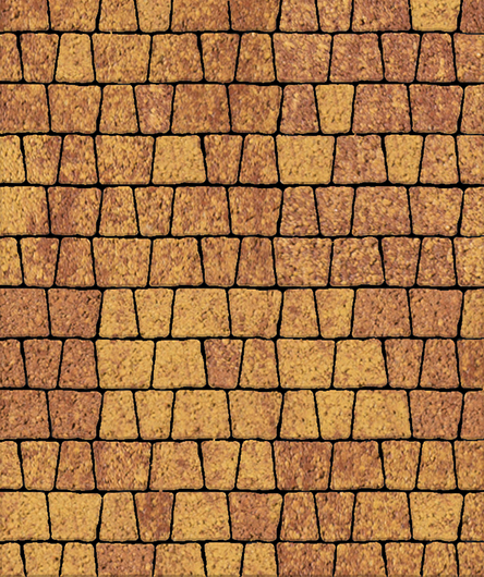 Состоит из 5-и элементов, которые выкладываются в хаотичном порядке рядами. Трапециевидная форма плиты позволяет выполнять как прямую, так и радиусную выкладку. Изготавливается по уникальной технологии методом полусухого вибропрессования из бетона. Брусчатка Абрис отличается высокой износостойкостью и практичностью в эксплуатации. Поверхность красно-желтого цвета.