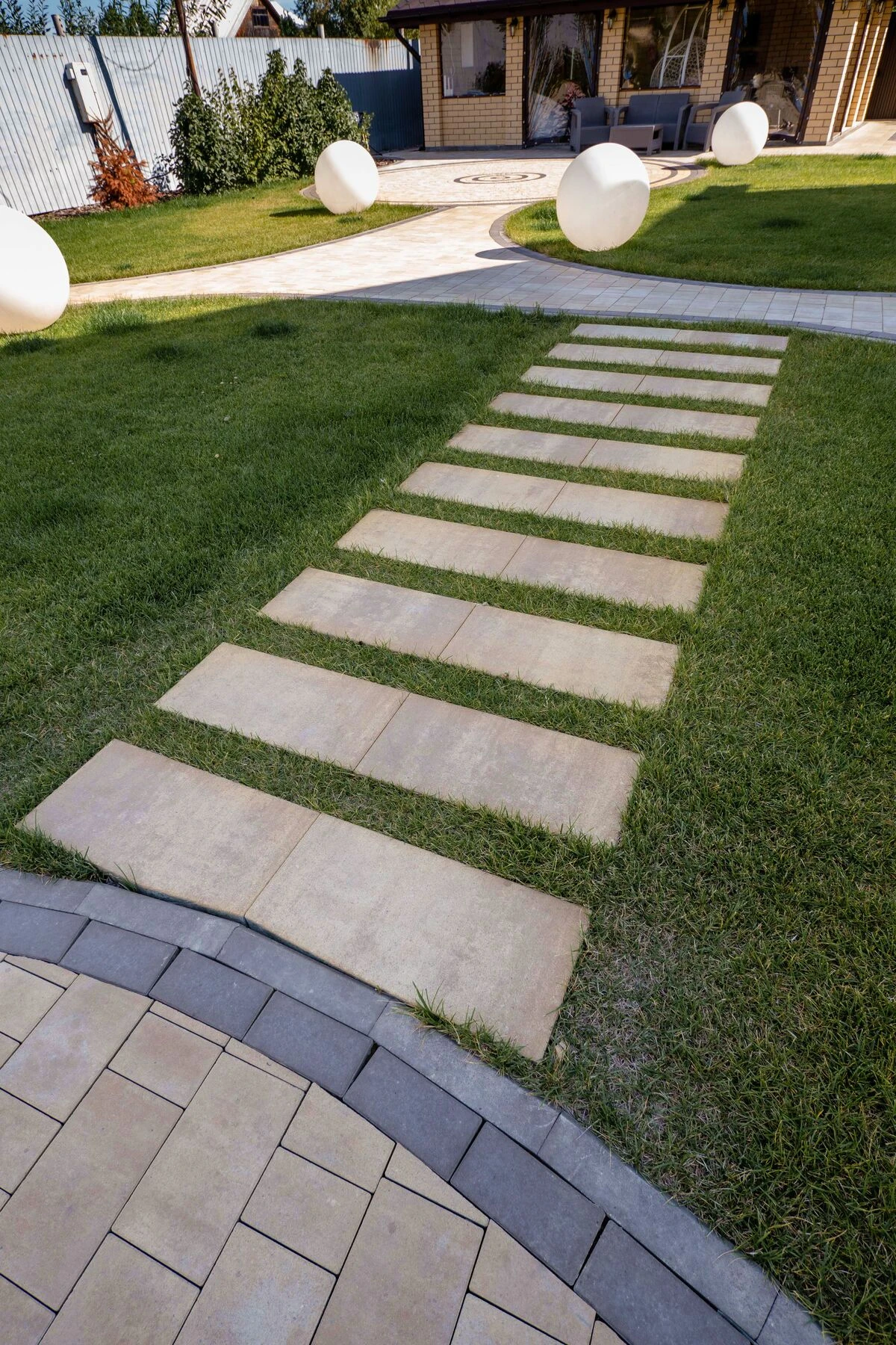 Освещение добавляет дорожке не только функциональность, но и красоту. Это необязательный элемент декора, однако с настроенным освещением снижается риск получить травму в темноте, когда люди подворачивают ноги из-за того, что нога ступает в пространство между плитками.