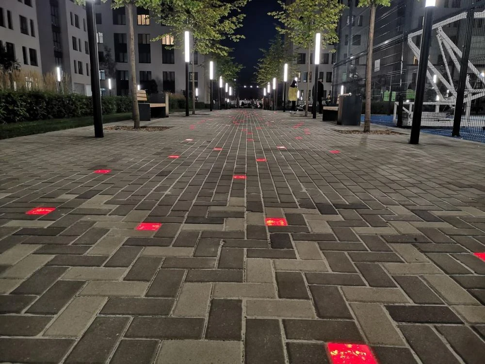 При помощи светящейся LED-брусчатки можно делать подсвечиваемую дорожную разметку, обозначение прогулочных пешеходных и велосипедных дорожек, зонирование парков или скверов. Это яркий, современный и практичный способ украсить территорию и оживить ландшафтный дизайн.