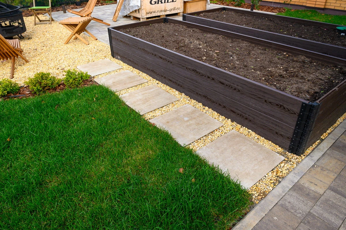• Благоустройство дома: плитка в цвете Антрацит и шаговые дорожки