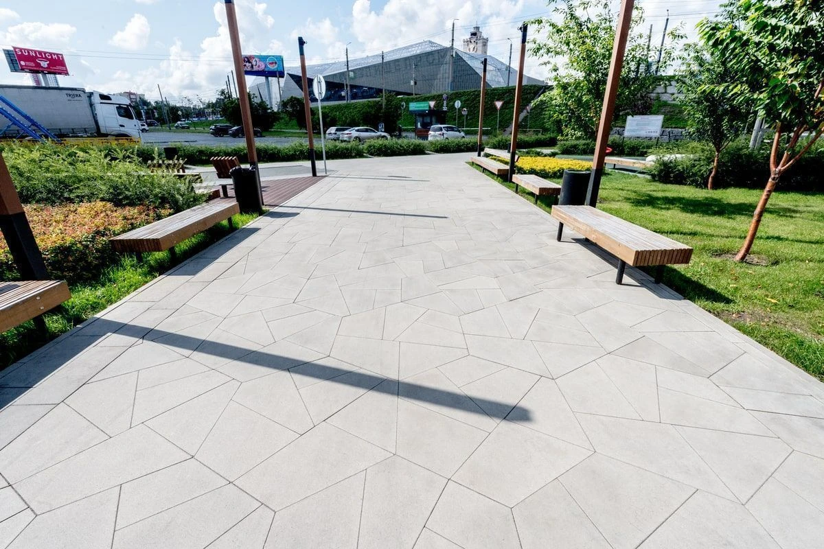 • Ландшафтный дизайн в Тюмени с плиткой Ригель, Трио, 300х900 мм