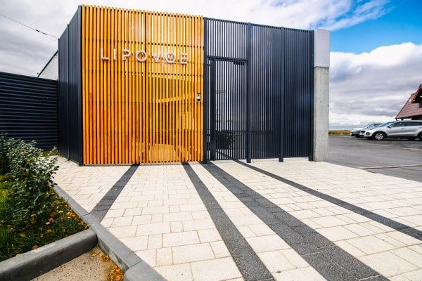 Благоустройство базы отдыха Липовое выполнено с применением плитки «Поревит». Основой тротуарного мощения стала плитка Старый город в коллекции Мрамор белого и черного цвета. Фактура плитки придает ей премиальность, блеск на солнце.
