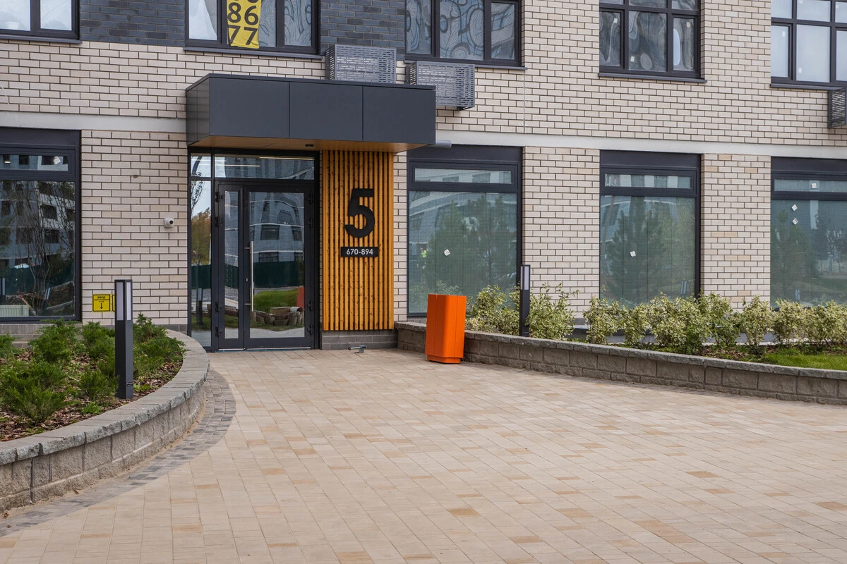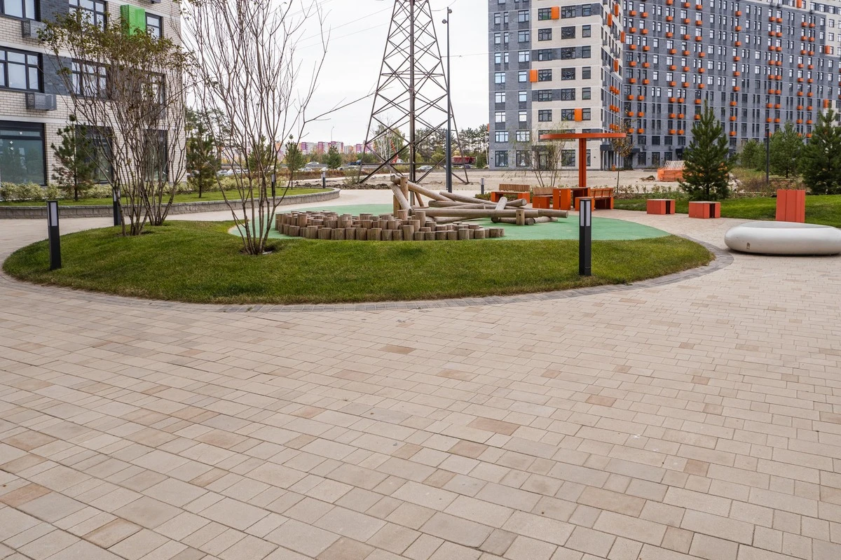 Проект выполнен в ЖК Колумб для внутренней и внешней отделки территории комплекса. Основный материал — тротуарная плитка «Старый город» в цветах Доломит и Степняк, которые визуально отделяют зоны друг от друга, а также служат контрастом от асфальтированной территории.